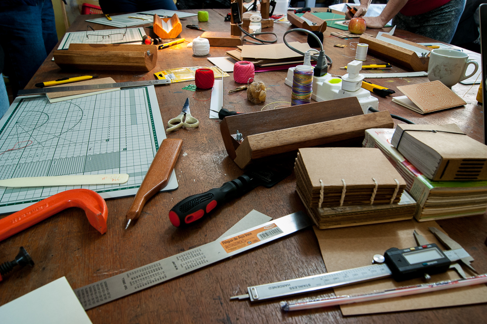 Oficina de encadernação no Tralharia